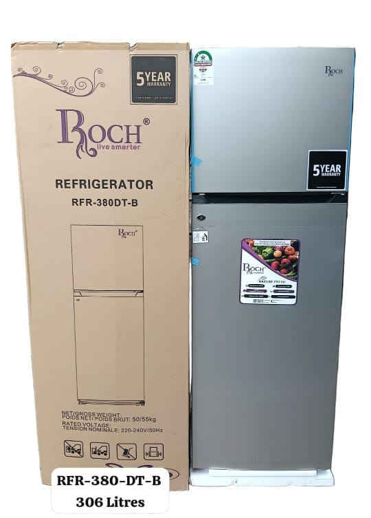 If you want a refrigerator that combines performance, style, and value, the Roch 306L Fridge Model RFR-380-DT-B Double Door is the perfect choice. It balances generous space with energy efficiency, making it suitable for today’s lifestyle.