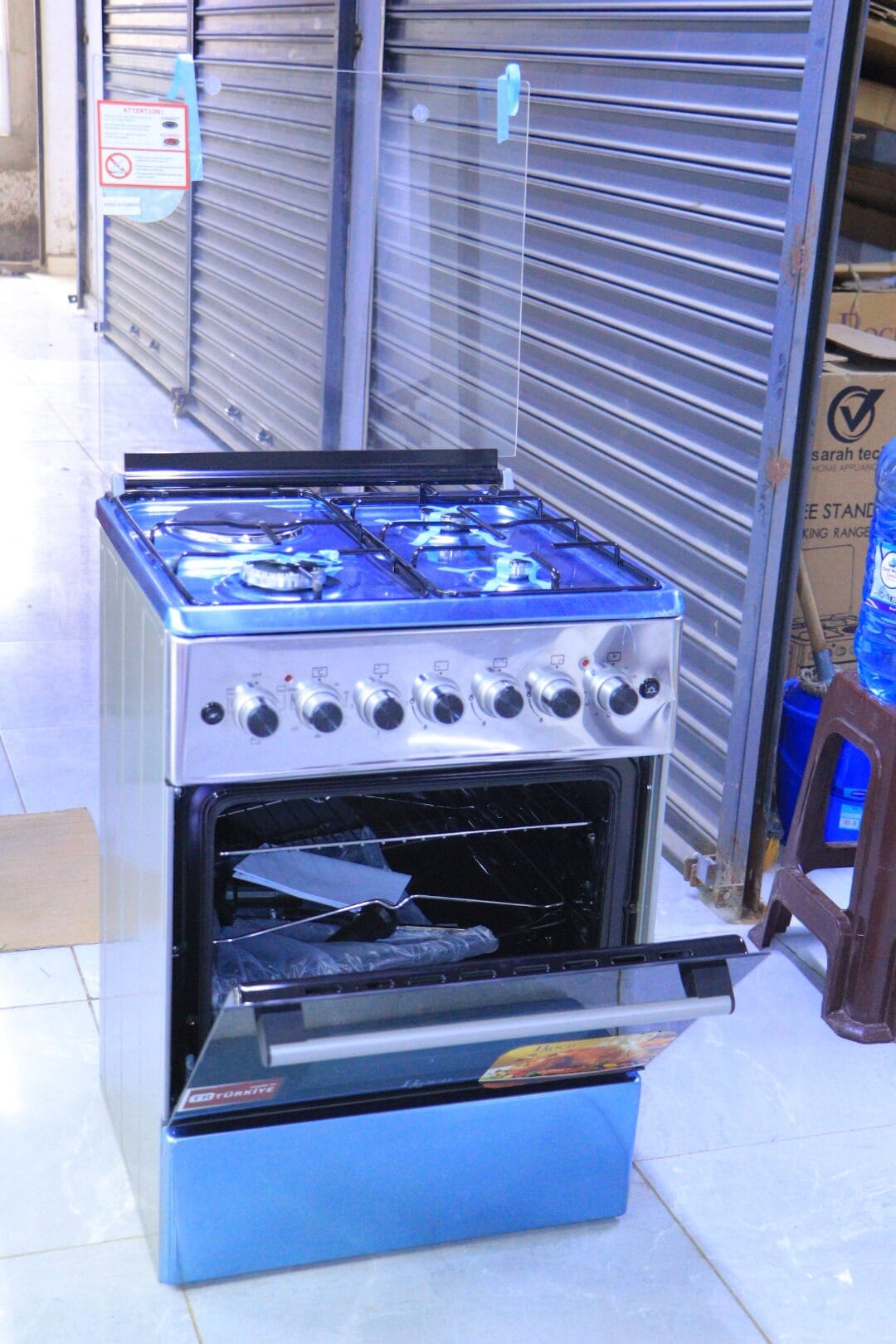 The ROCH 60×60 Free Standing Cooker comes with a stainless steel finish, which complements modern kitchen designs and is easy to clean. A glass lid protects the burners when not in use, and an oven lamp provides clear visibility while cooking.